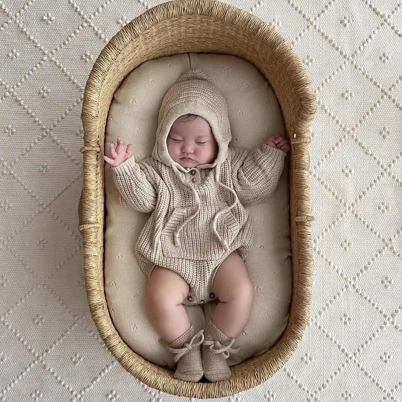 フード付きの長袖ニットロンパースです!写真映えするとても可愛い2色展開です!