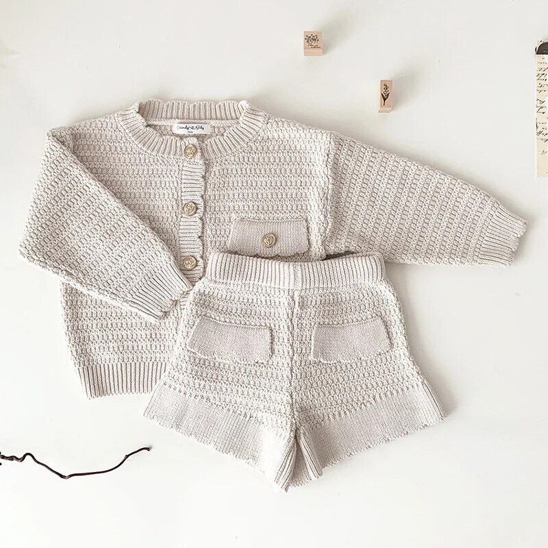 カラー展開がかわいいこれからの冬にぴったりです!あみ編みのカーディガンとパンツのセットで
